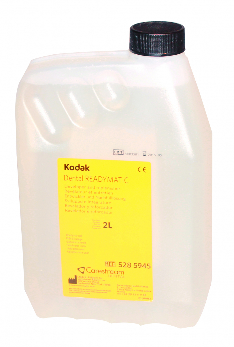 READYMATIC SVILUPPO Liquido pronto all'uso, per lo sviluppo delle radiografie, idoneo sia per sviluppatrici automatiche che per sviluppo manuale. 4 flaconi da 2 Lt cad.