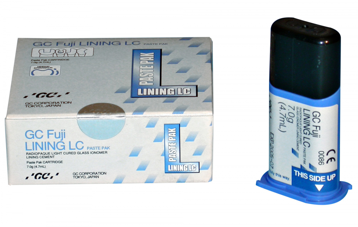 FUJI LINING LC PASTE PAK Cemento radiopaco, fotoattivabile, per sottofondi, a base vetroionomerica, disponibile in formulazione pasta-pasta. Caratterizzato da un'eccellente adesione alla struttura del dente e alle resine composite. Miscelazione senza bolle, erogazione semplice e precisa, posizionamento nelle cavità perfetto. Confezione: cartuccia Paste PaK da 7 gr + blocchetto di miscelazione