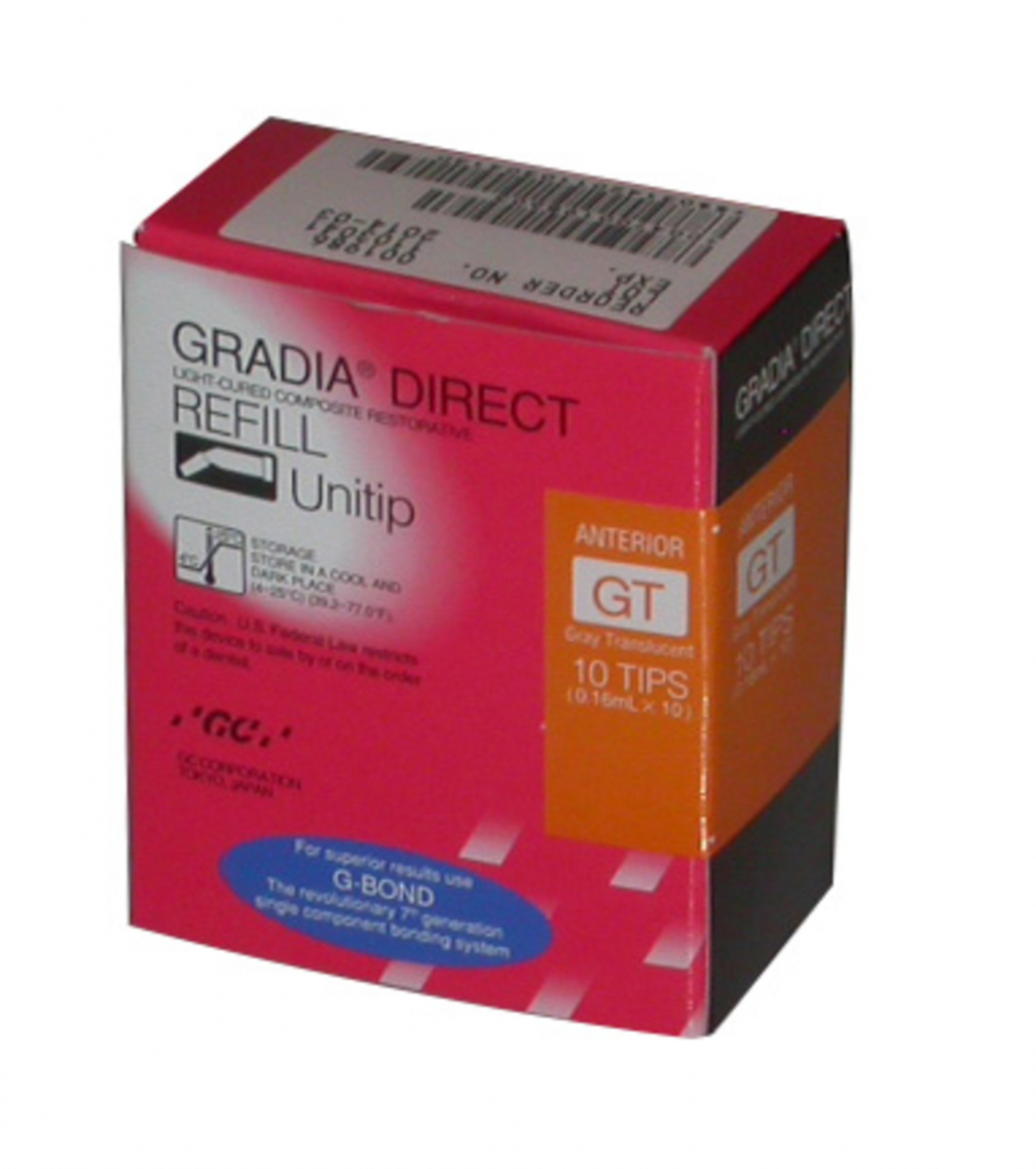 GRADIA DIRECT Composito a riempitivo ceramico, microibrido, fotopolimerizzabile, per restauri diretti dall'eccellente qualità estetica. Grazie alla sua particolare struttura interna, che imita quella del dente naturale, è possibile ottenere otturazioni belle e naturali già con una sola delle tinte Standard. Inoltre, sovrapponendo un trasparente (per esempio il neutro NT) ad una delle masse Standard, un normale restauro è già praticamente invisibile. Quando le esigenze estetiche sono maggiori infine, si può adottare la metodica di stratificazione con le masse aggiuntive Outside Special (traslucide) per restauri anteriori e posteriori, ed Inside Special (opache) per restauri anteriori. Confezione ricambio da 10 unitip da 0,24 gr cad. nei colori outside special per anteriori CT, CVT, GT, WT.