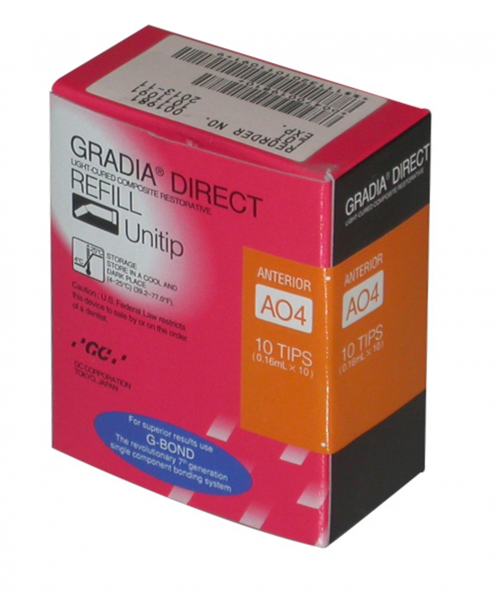 GRADIA DIRECT Composito a riempitivo ceramico, microibrido, fotopolimerizzabile, per restauri diretti dall'eccellente qualità estetica. Grazie alla sua particolare struttura interna, che imita quella del dente naturale, è possibile ottenere otturazioni belle e naturali già con una sola delle tinte Standard. Inoltre, sovrapponendo un trasparente (per esempio il neutro NT) ad una delle masse Standard, un normale restauro è già praticamente invisibile. Quando le esigenze estetiche sono maggiori infine, si può adottare la metodica di stratificazione con le masse aggiuntive Outside Special (traslucide) per restauri anteriori e posteriori, ed Inside Special (opache) per restauri anteriori. Confezione ricambio da 10 unitip da 0,24 gr cad. nei colori inside special per anteriori AO2 e AO4