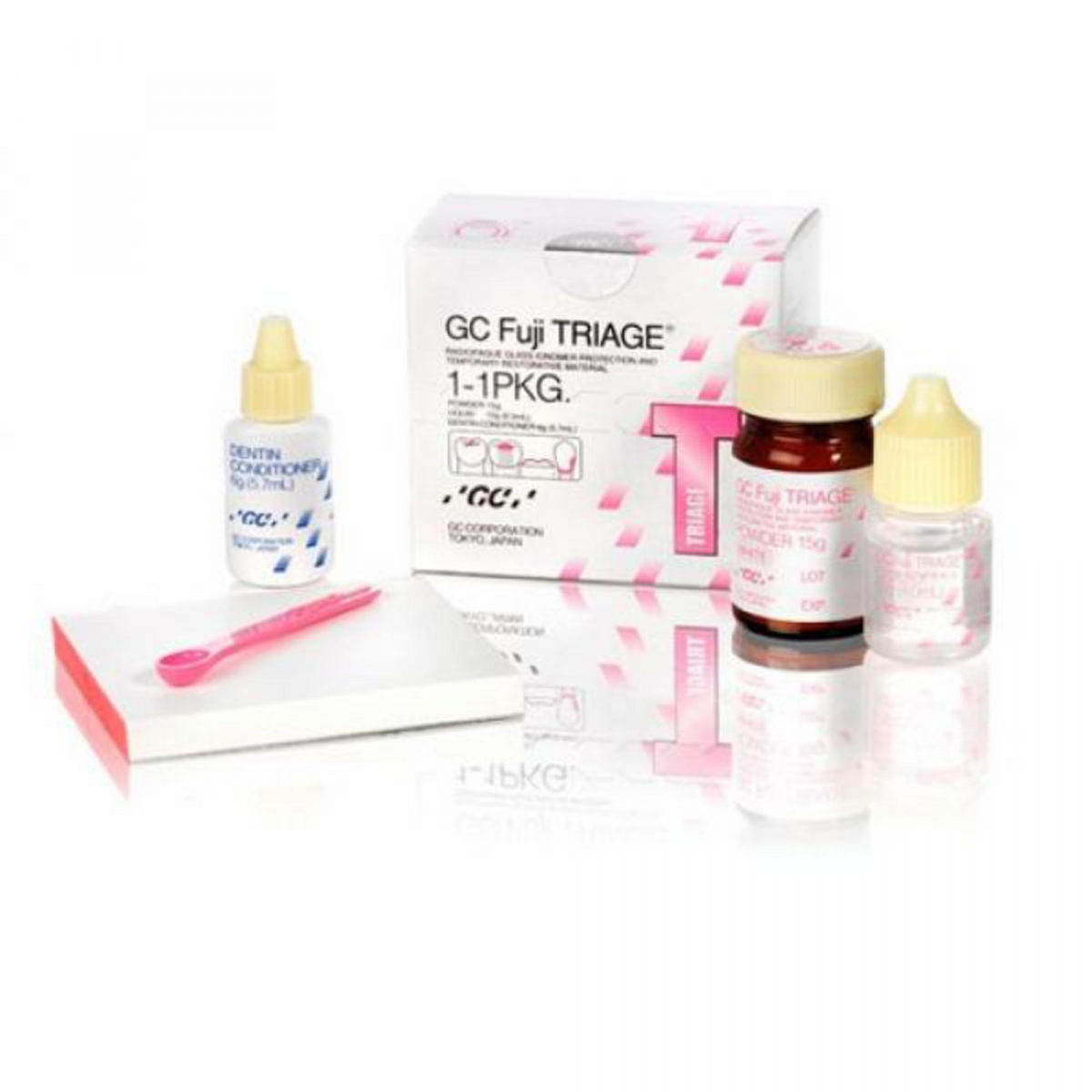 FUJI TRIAGE Materiale vetro-ionomerico, autopolimerizzante, ad elevato rilascio di fluoro. Indicato per sigillature, protezione di fessure e superfici radicolari, prevenzione dell'ipersensibilità e per i trattamenti provvisori quali sigillatura endodontica intermedia. Insensibile all'umidità, grazie alla sua ridotta viscosità, penetra facilmente nei pozzetti e nelle fessure. Confezione: polvere gr. 15 + liquido ml.8 -colore Bianco