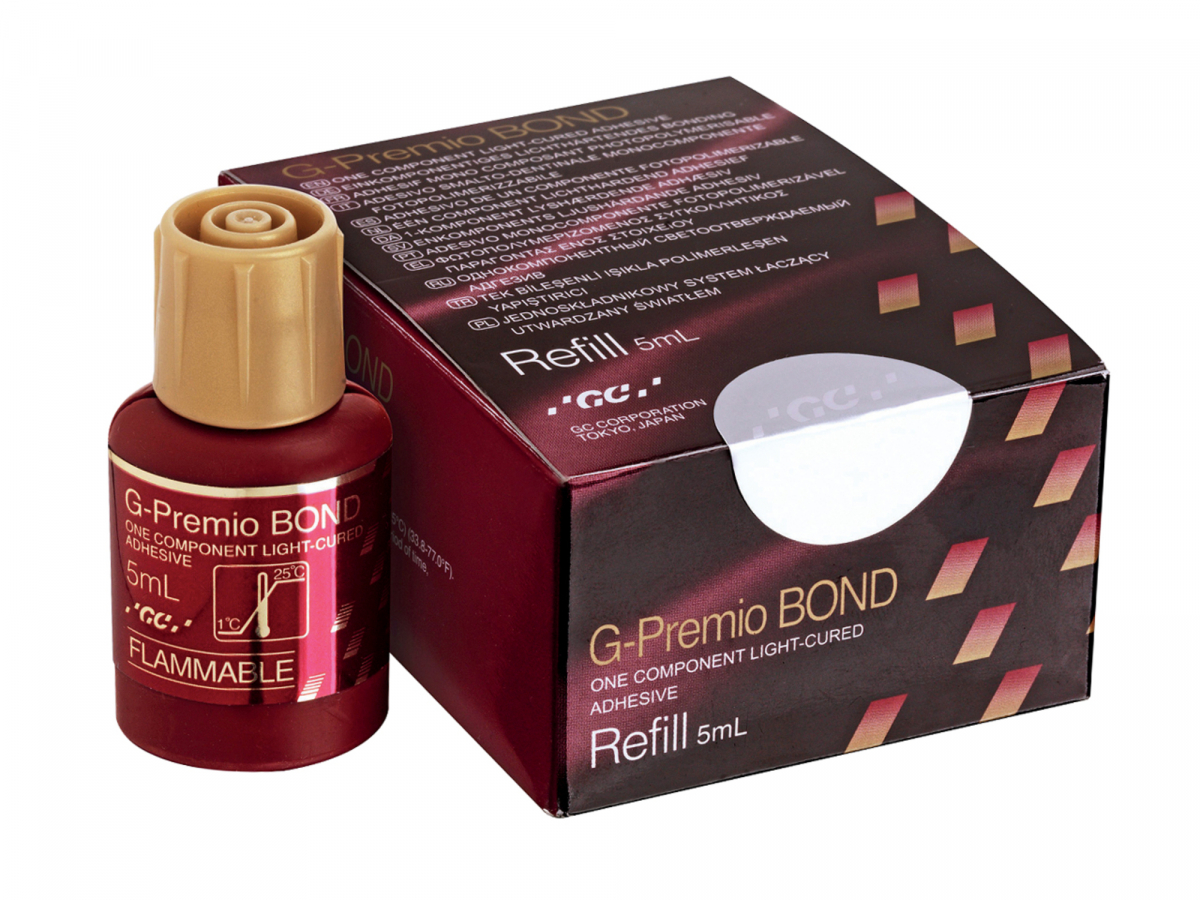 Adesivo universale monocomponente. Grazie alla combinazione dei tre monomeri funzionali (4-MET, MDP ed MDTP) consente di ottenere un'adesione forte e stabile alla struttura dentale. La particolare composizione interagisce anche su compositi, metalli (inclusi quelli preziosi), zirconia e allumina, contribuendo alla sicura ritenzione del restauro. In combinazione con il Dual Cure Activator, G-Premio Bond può essere attivato anche in assenza di fotopolimerizzazione. Utilizzabile con tecnica di mordenzatura, auto, self o total etch.