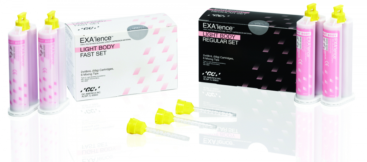 EXA'LENCE Materiale da impronta a base di silicovinilpolietere (VPES) per impronte perfette e facilissime da prendere. GC ha sfruttato le migliori qualità di due grandi materiali, polieteri e siliconi, per creare il materiale da impronta della nuova generazione, che risolve una serie di problemi e garantisce impronte facilmente prevedibili in tutte le condizioni. EXA'lence possiede elevata elasticità e resistenza alle lacerazioni, abbinate a proprietà idrofile costanti e ad un'eccezionale scorrevolezza; il risultato è la produzione di impronte straordinariamente prevedibili, tra le più accurate attualmente realizzabili. Queste le sue caratteristiche principali: - proprietà idrofile intrinseche per catturare i minimi dettagli, anche in un ambiente umido - flusso eccezionale e caratteristiche tissotropiche per catturare tutti i dettagli e produrre margini ondulati netti - elasticità superiore con un elevato grado di robustezza per resistere alle lacerazioni - ampia scelta di tempi di indurimento e viscosità La