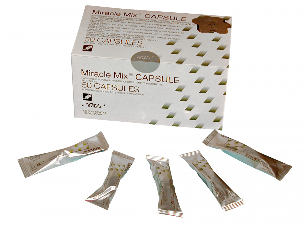 MIRACLE MIX Cemento vetroionomero, autopolimerizzabile, rinforzato con metallo, per la ricostruzione di monconi. Confezione: 50 capsule