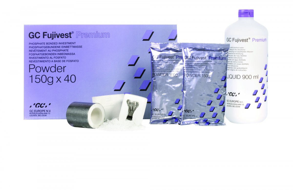 FUJIVEST PREMIUM Rivestimento fosfatico privo di grafite per corone e ponti: indicato per tutte le leghe, in particolare per leghe non preziose. Versatile ed affidabile, è adatto alle tecniche con e senza cilindro; può essere utilizzato con procedure di riscaldamento rapido o progressivo. Flacone di liquido da 900 ml