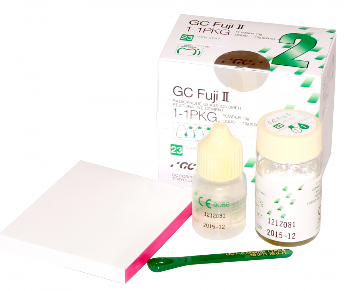FUJI II Cemento vetroionomero, autopolimerizzabile, per restauri di III e V classe. Confezione: polvere da 15 gr + liquido da 8 ml