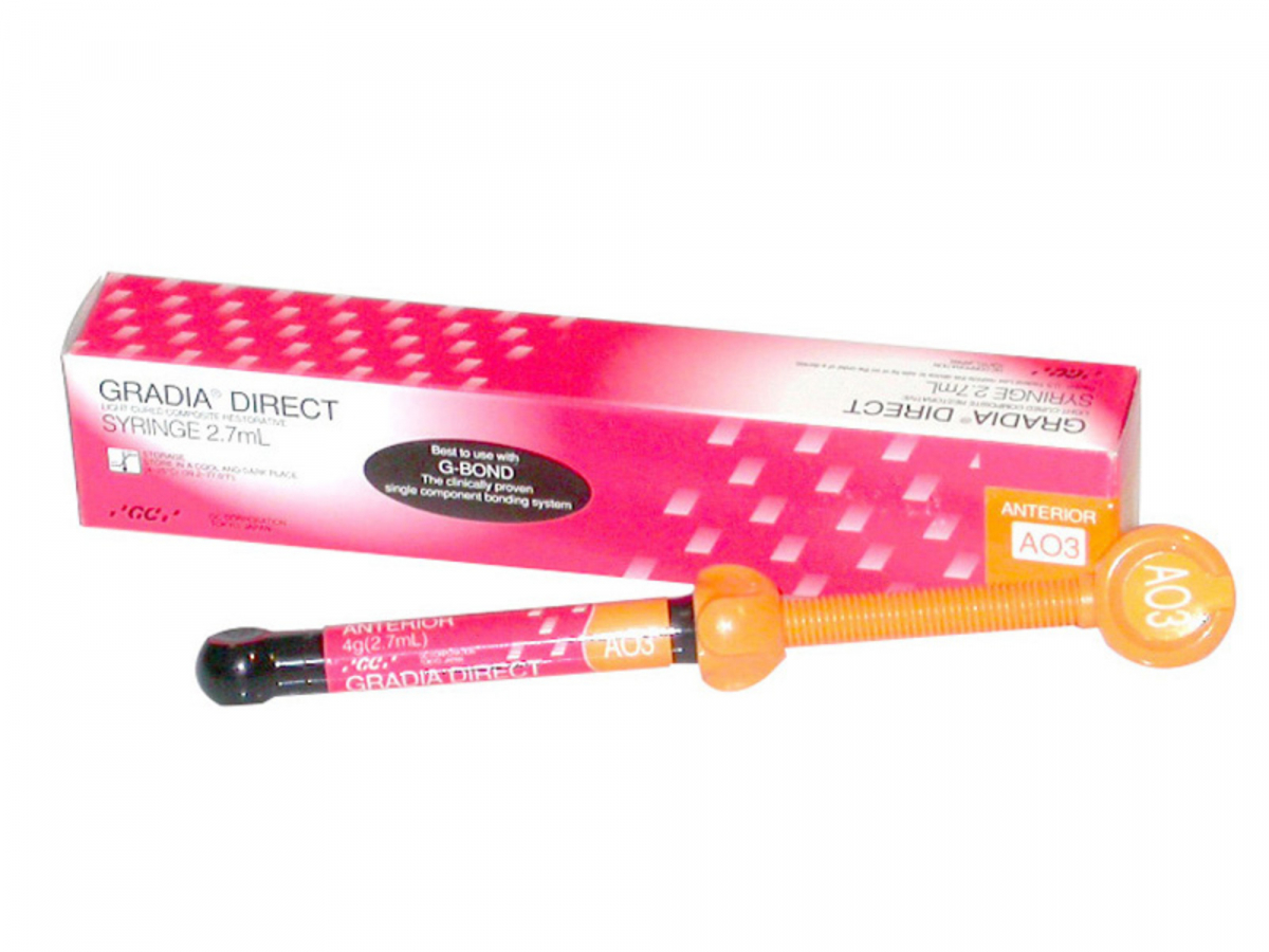 GRADIA DIRECT Composito a riempitivo ceramico, microibrido, fotopolimerizzabile, per restauri diretti dall'eccellente qualità estetica. Grazie alla sua particolare struttura interna, che imita quella del dente naturale, è possibile ottenere otturazioni belle e naturali già con una sola delle tinte Standard. Inoltre, sovrapponendo un trasparente (per esempio il neutro NT) ad una delle masse Standard, un normale restauro è già praticamente invisibile. Quando le esigenze estetiche sono maggiori infine, si può adottare la metodica di stratificazione con le masse aggiuntive Outside Special (traslucide) per restauri anteriori e posteriori, ed Inside Special (opache) per restauri anteriori. Confezione ricambio in siringa da 4 gr cad. nei colori inside special per anteriori AO2, AO3, AO4