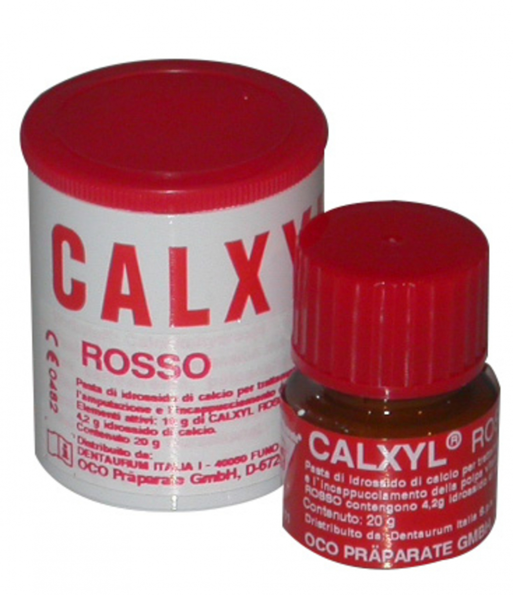 CALXYL , pasta a base di idrossido di calcio. Vasetto da 20 gr - Rosso , x il trattamento della dentina priva di carie nelle adiacenze della polpa , trattamento di carie profonde , incappucciamento indiretto e diretto della polpa ,pulpotomia , riempimento del canale radicolare