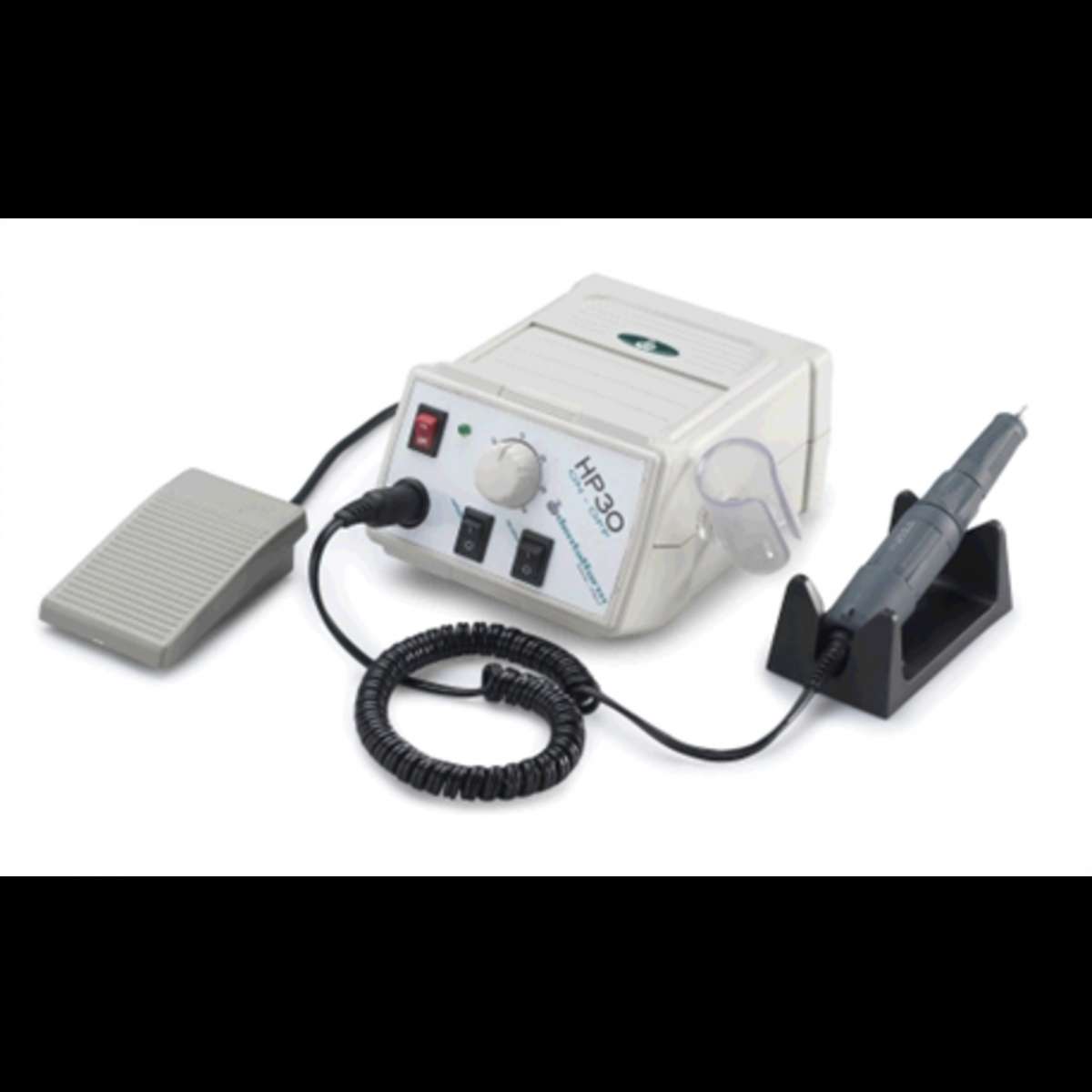 MICROMOTORE HP30 ON-OFF - Dentalfarm Micromotore che ha tutte le caratteristi che per soddisfare le necessità operativ e del moderno laboratorio. Compatto ed essenziale, è caratterizzato da un'elettronica semplificata; il coma ndo a pedale ha la funzione di interrutt ore, la velocità si regola col potenziom etro, anche mentre il motore è attivo. Design funzionale salva spazio: la centr alina può anche essere posizionata in ve rticale, occupando 10 cm ca. La centralina inoltre permette di coordi nare la velocità massima da raggiungere, ha la funzione reverse e può governare una velocità fissa anche senza l'uso del pedale on-off. Prestazionale, affidabile, delicato: anc he con l'impostazione a massima velocità la partenza è sempre progressiva e la f ermata immediata. Versione da tavolo. n° di giri: 1000-30000 min.-¹ Massimo torque: 2,7 Ncm