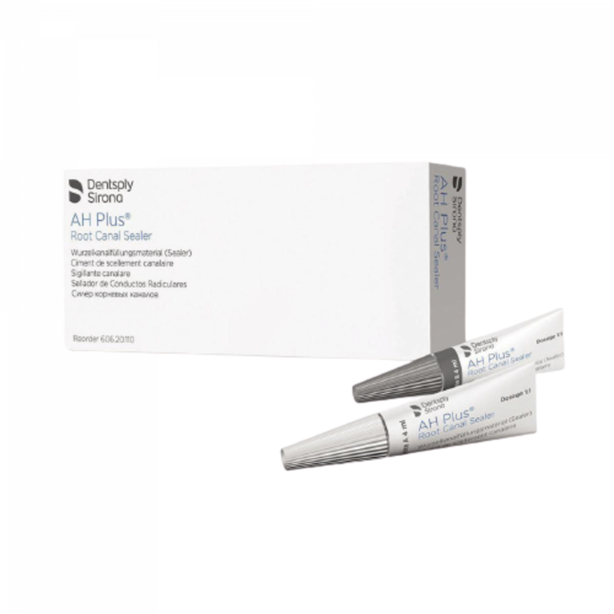 AH PLUS Cemento radiopaco resinoso per otturazione canalare, a base di polimeri epossidici, privo di eugenoli. Confezione: 2 tubetti da 4 ml cad. (pasta A + pasta B) + accessori