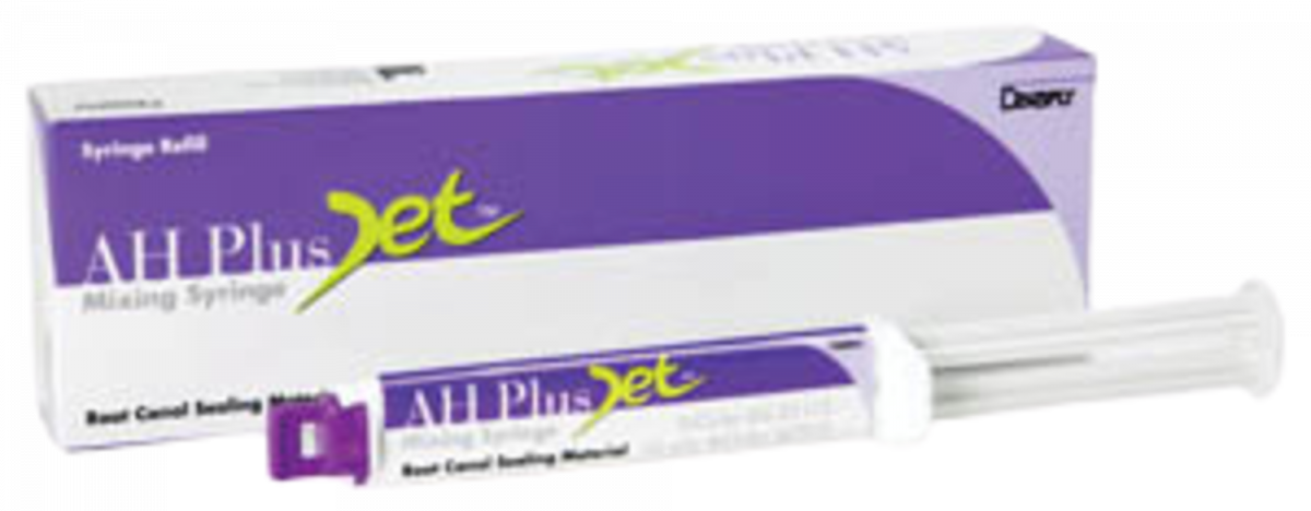 AH PLUS JET Versione in siringhe automiscelanti pre-riempite del cemento AH Plus: facile applicazione del materiale senza sprechi, grazie anche ai pratici terminali intraorali. Starter Kit: 1 siringa automiscelante da 15 gr + 20 puntali miscelatori + 20 terminali intraorali + accessori