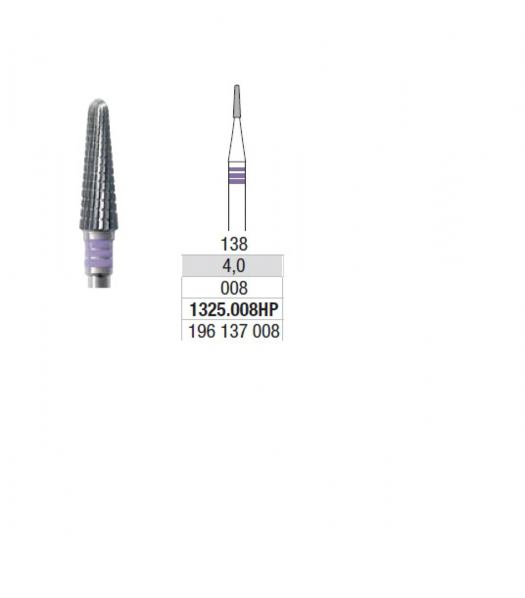 Fresa TC – Taglio 25 , anello doppio viola,dentatura a spirale super fine indicata per la lavorazione di materiali resistenti come il titanio, leghe non preziose, leghe preziose,