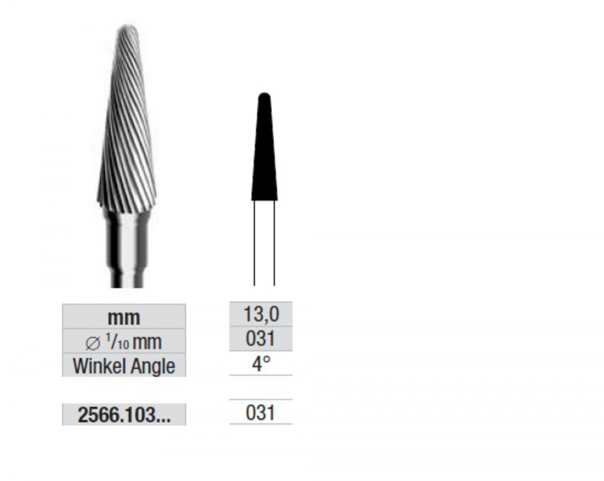 Fresa conica a dentatura semplice , punta tonda