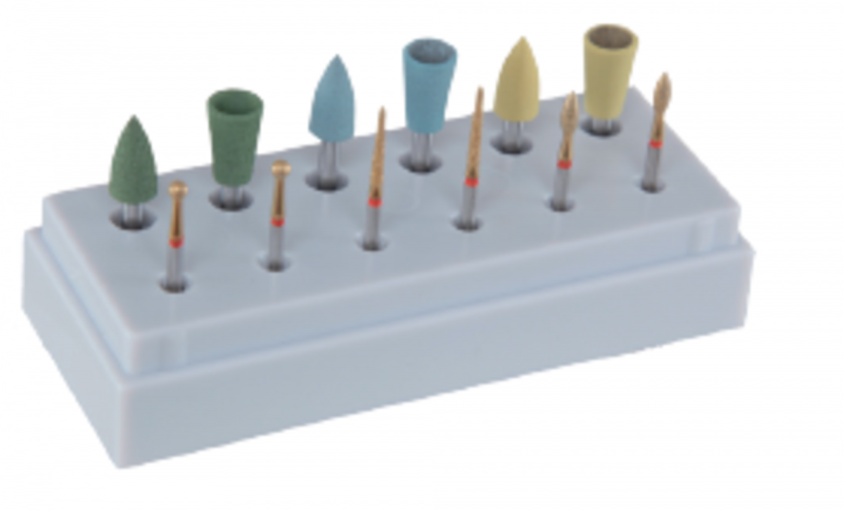 6 frese diamantate DiaCut e 6 punte diamantate per lucidatura CeraGloss per il ritocco dei restauri in ossido di zirconio nello studio