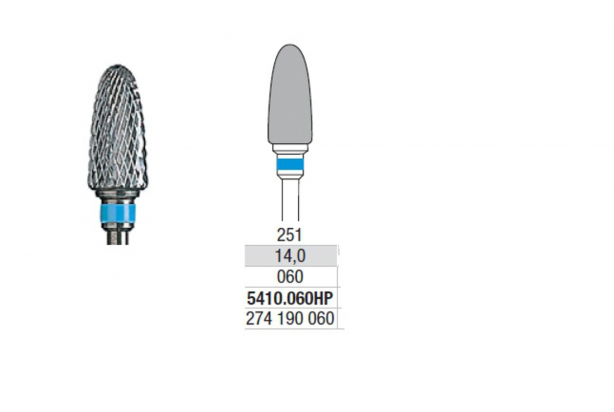 Fresa TC – Taglio 10 anello azzurro indicata per la lavorazione di leghe non preziose e leghe per protesi scheletrate, e per la sgrossatura di tutti i materiali dentali senza fratturare la superficie.