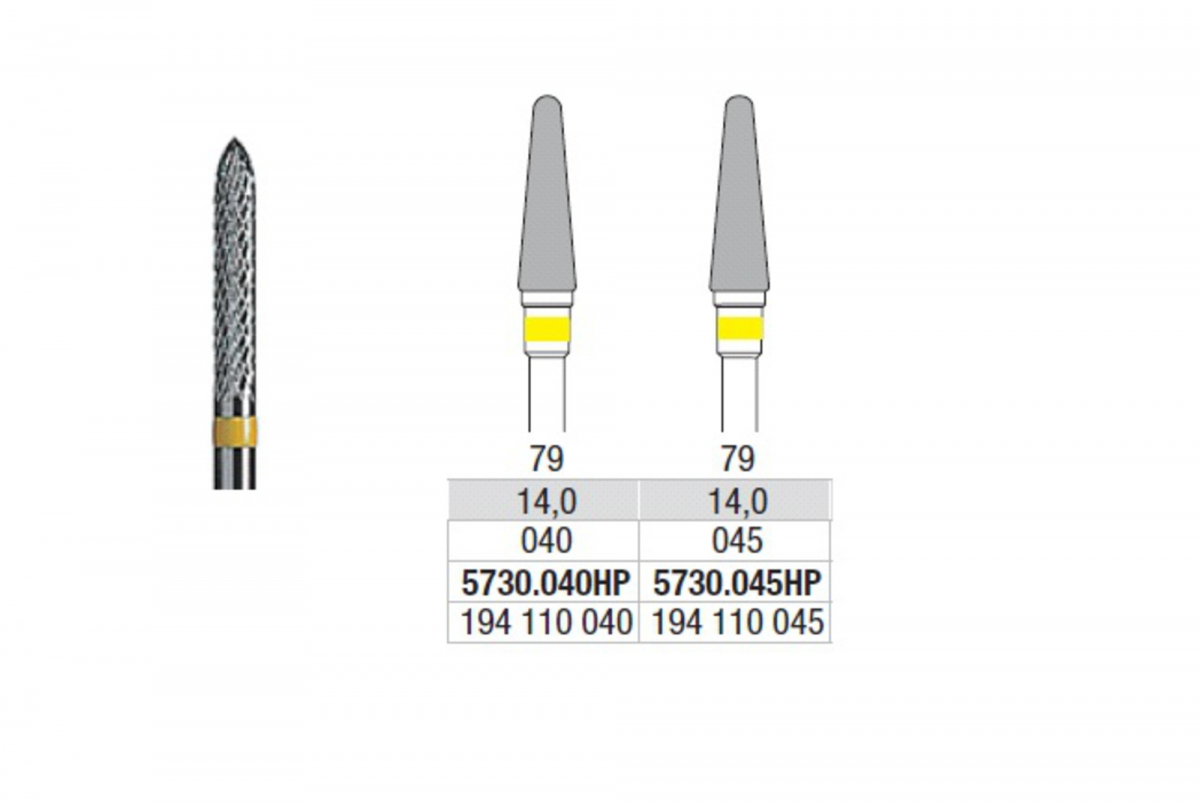 Fresa TC – Taglio 30 anello giallo, indicata per rifinitura di tutte le leghe e compositi. Ideale per ceramica, poiché la forma speciale