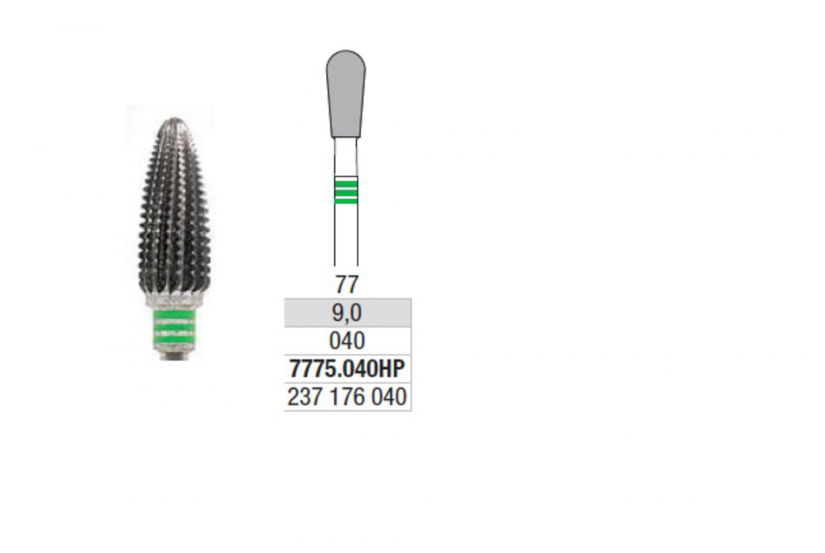 Fresa TC – Taglio 75 anello verde , Dentatura semplice con taglio trasversale indicata per la lavorazione delle resine/ribasature