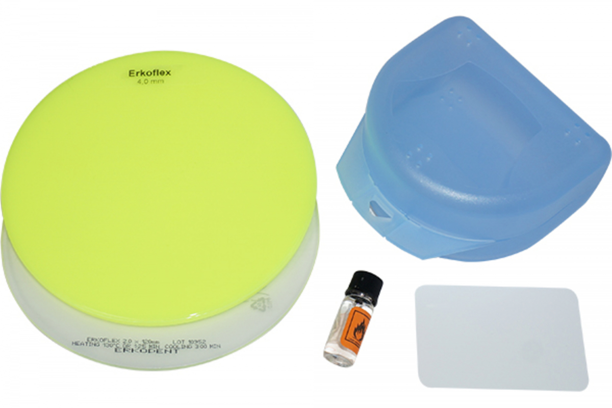 1 x Erkoflex 2,0 mm trasparente, 1 x Erkoflex 4,0 mm trasparente o colorato, 1 x Erkobox, 1 x istruzioni, 1 x campione foglio FG.