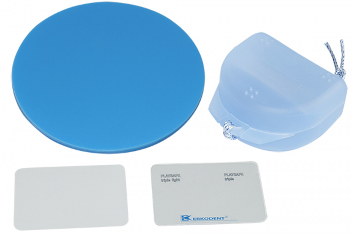 La superficie occlusale liscia permette i movimenti dell'atleta ed ha una parte rinforzata di protezione dagli urti laterali.
