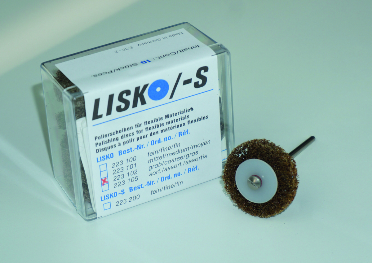 DISCHI LISKO PER HP - Erkodent Dischi abrasivi montati, in ossido di al luminio e corindone, ideali per la rifin itura e la lucidatura delle placche per termostampaggio. LISKO per la lucidatura Confezione: 10 pezzi - Colore Marrone Grana Grossa