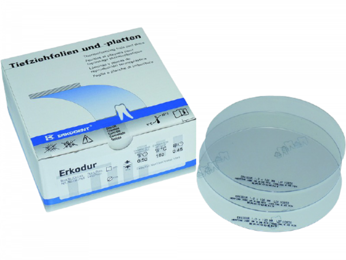 Disco termoformabile di materiale molto resistente, duro ed elastico a base di PETG (copoliestere) e strato isolante.