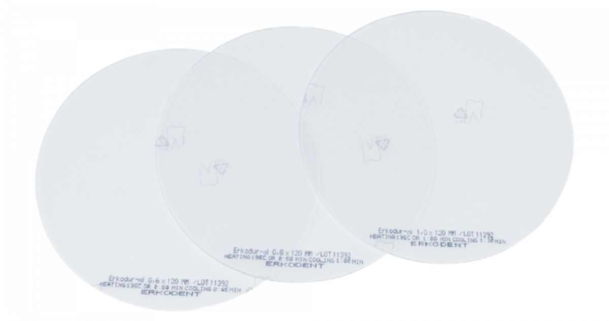 Foglio termoformabile (Copoliestere) con foglio isolante trasparente cristallo, elevata caratteristica viscoelastico-dura, resistente alla rottura ed eccellente stabilità dimensionale. Erkodur-al è un materiale ottimizzato per la produzione di allineatori. Rispetto al collaudato Erkodur, il materiale è circa il 35% più morbido con una forza iniziale e una sensazione di tensione inferiore durante l'inserimento. La curva di perdita di memoria è molto piatta e questo determina una forza effettiva di Erkodur-al maggiormente protratta nel tempo. Dispositivo medico di classe 1