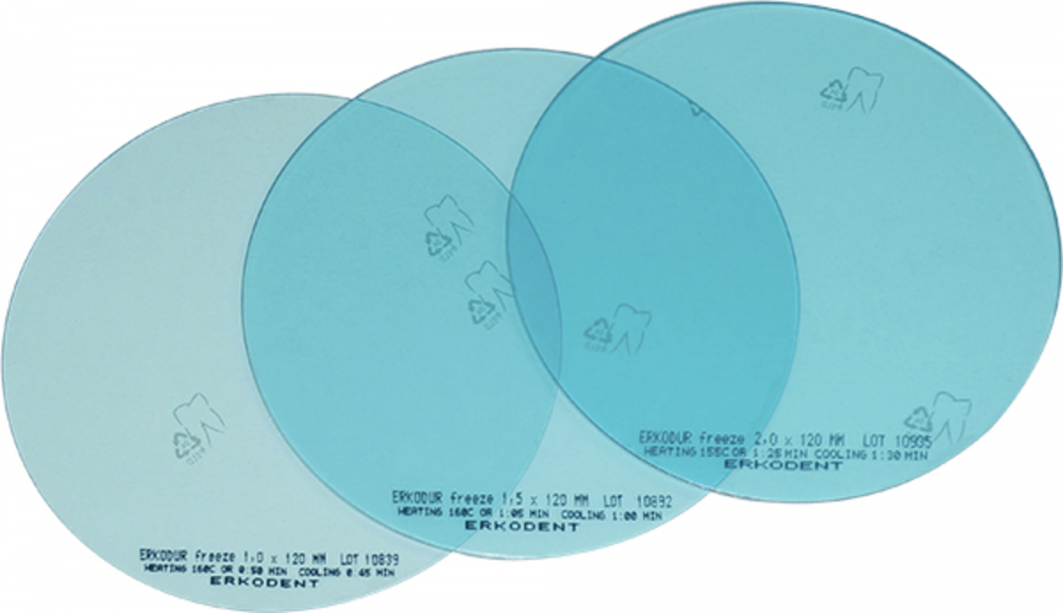 Dischi termoplastici duri-elastici, per la realizzazione di bite occlusali, docce Miniplast, docce per bruxismo, bite di stabilizzazione, placche di Drum, impacchi di compressione, forme di fusione. In polietilentereftalatoglicole (PETG). Si legano alla resina autopolimerizzante, con lamina isolante.