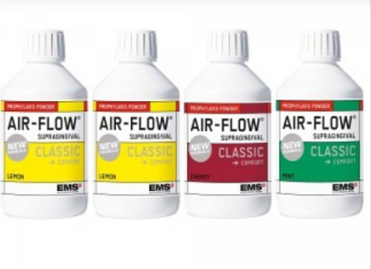 Miscela speciale composta da bicarbonato di sodio e ossido di silicio idrorepellente, studiata per l'utilizzo ottimale dei dispositivi AIR-FLOW, permette l'eliminazione degli acidi generati dai microrganismi situati nella parte sopra-subgengivale, riducendo la formazione della placca.