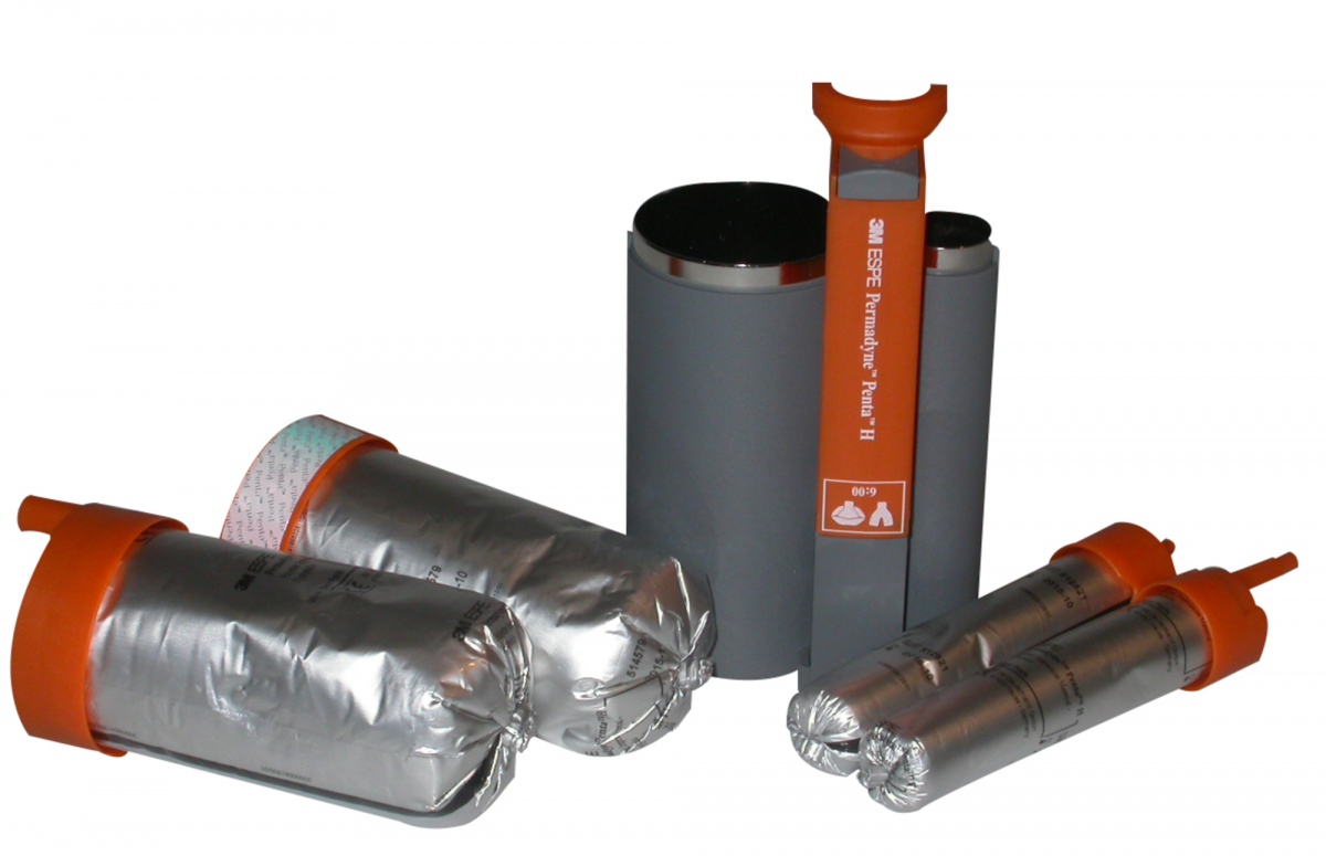 PERMADYNE PENTA H Polietere per impronte di precisione in un'unica fase, a due viscosità. Versione per sistema Pentamix. TIPO H (ad alta viscosità) - Colore Arancione. Confezione Doppia: 2 cartucce di massa base da 300 ml cad. + 2 cartucce di catalizzatore da 60 ml cad.