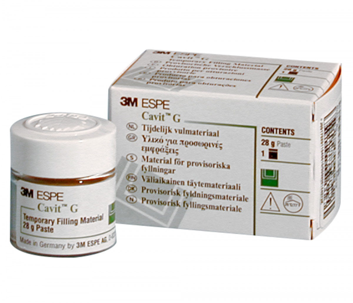 CAVIT G Cemento radiopaco, autopolimerizzabile, per otturazioni provvisorie. A base di ossido di zinco, il tipo G , è indicato per la chiusura temporanea in inlay. Vasetto da 28 gr