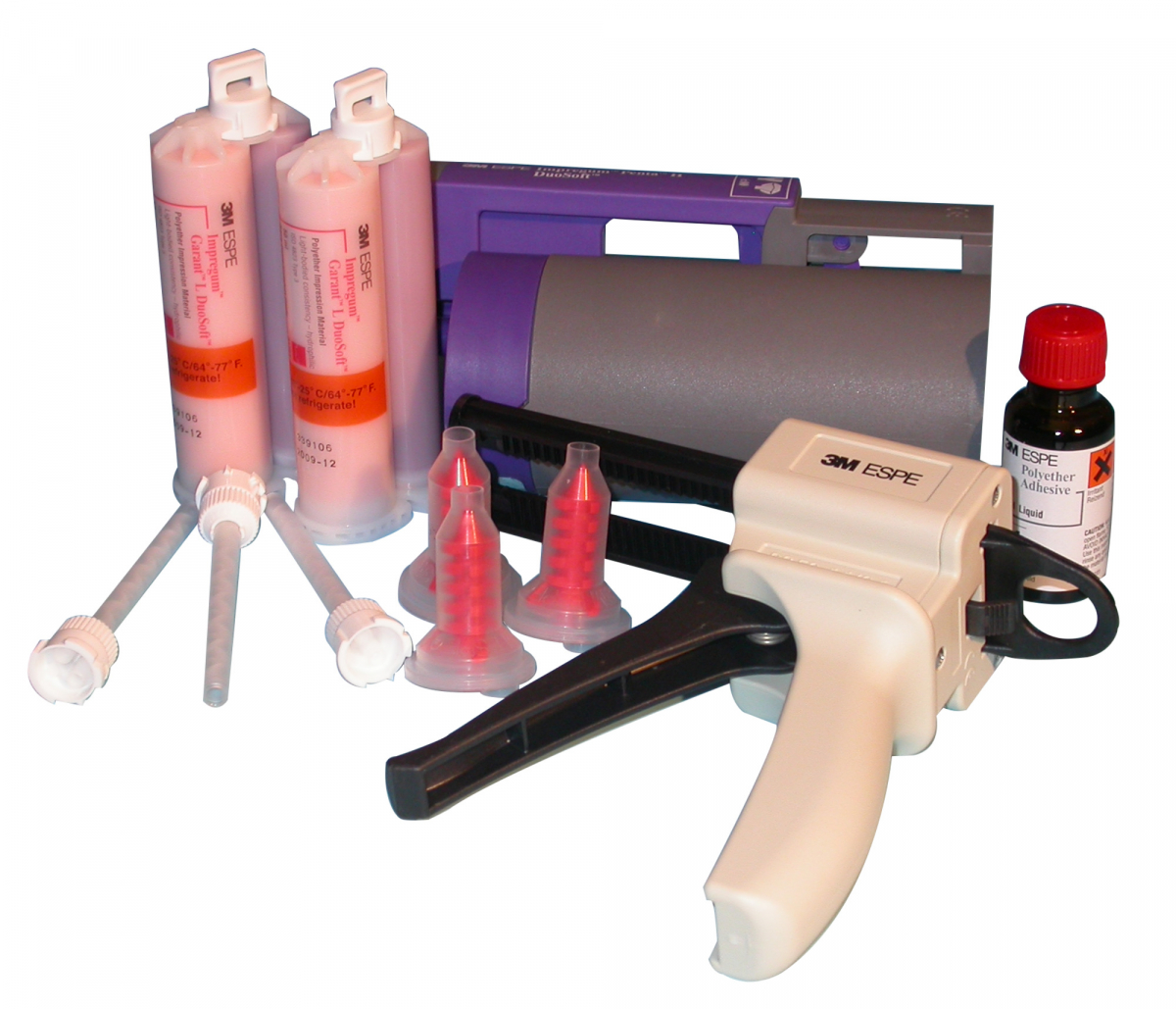 IMPREGUM PENTA H DUOSOFT Polietere per impronte di precisione in un'unica fase, a due viscosità, in versione soft. Versione per sistema Pentamix. Tipo H (ad alta viscosità) Intro Kit per PENTAMIX 3: 1 pasta base da 300 ml + 1 catalizzatore da 60 ml + 1 cartuccia Impregum Penta H DuoSoft P3 + 10 puntali miscelatori Penta rossi + 2 cartucce Garant da 50 ml cad. + 10 puntali miscelatori Garant bianchi + 10 puntali intraorali Garant bianchi + 1 flacone adesivo per polieteri da 17 ml