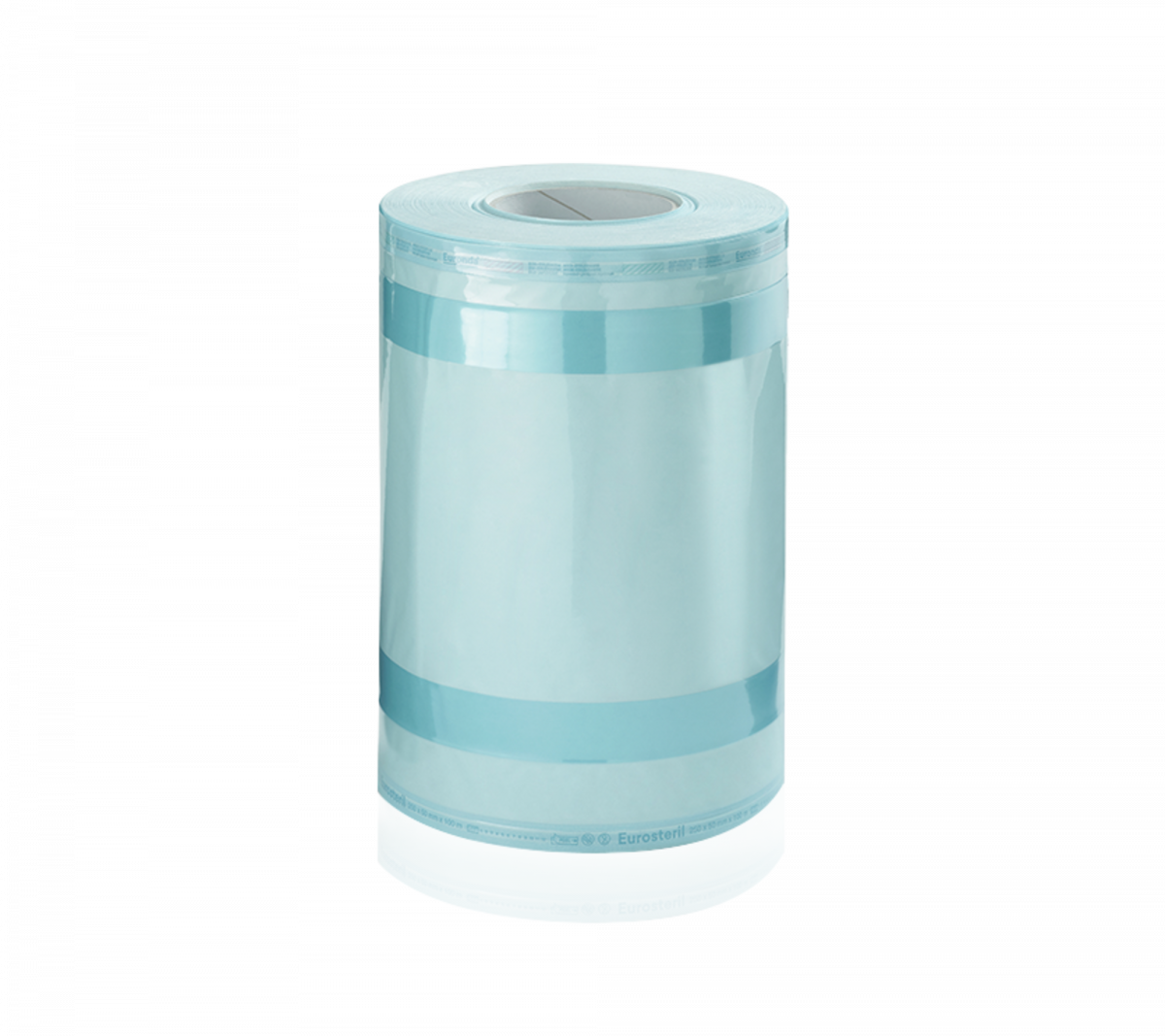 Rotolo per sterilizzazione a soffietto in carta medicale bianca ad elevata grammatura (60g/m²) e doppio strato di film azzurro in poliestere/polipropilene. Mantiene inalterata nel tempo la sterilità degli strumenti fino a 6 mesi.