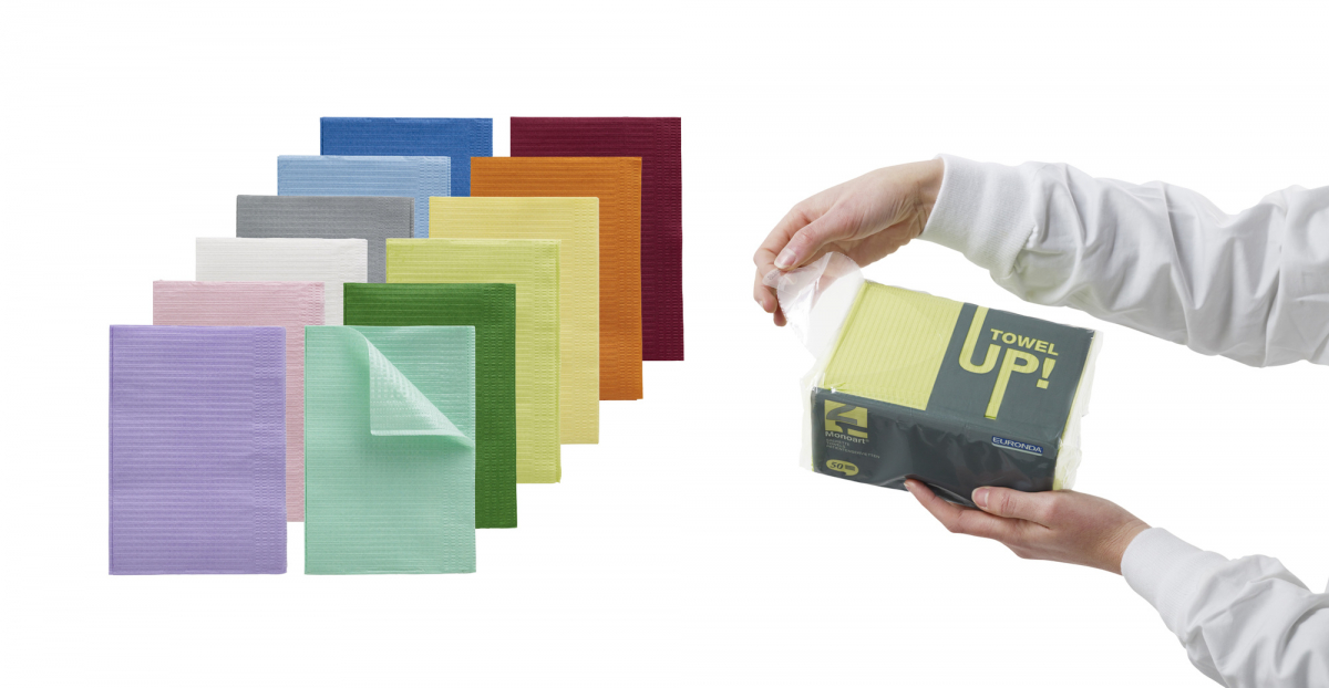 Le salviette monouso Monoart® Towel Up! sono realizzate in pura ovatta di cellulosa altamente assorbente accoppiata e goffrata con film di polietilene impermeabile. Grazie all'innovativo packa-ging con sistema Apri/Chiudi, le salviette vengono manipolate una alla volta e rimangono al riparo da polvere e contaminazioni per un'igiene massima e una grande praticità d'utilizzo.