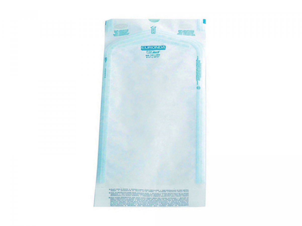Buste autosigillanti in carta medicale bianca ad elevata grammatura (60g/m2) e doppio strato di film azzurro in poliestere/polipropilene. Tre saldature laterali a canali impermeabili e uniformi per la massima protezione microbica.