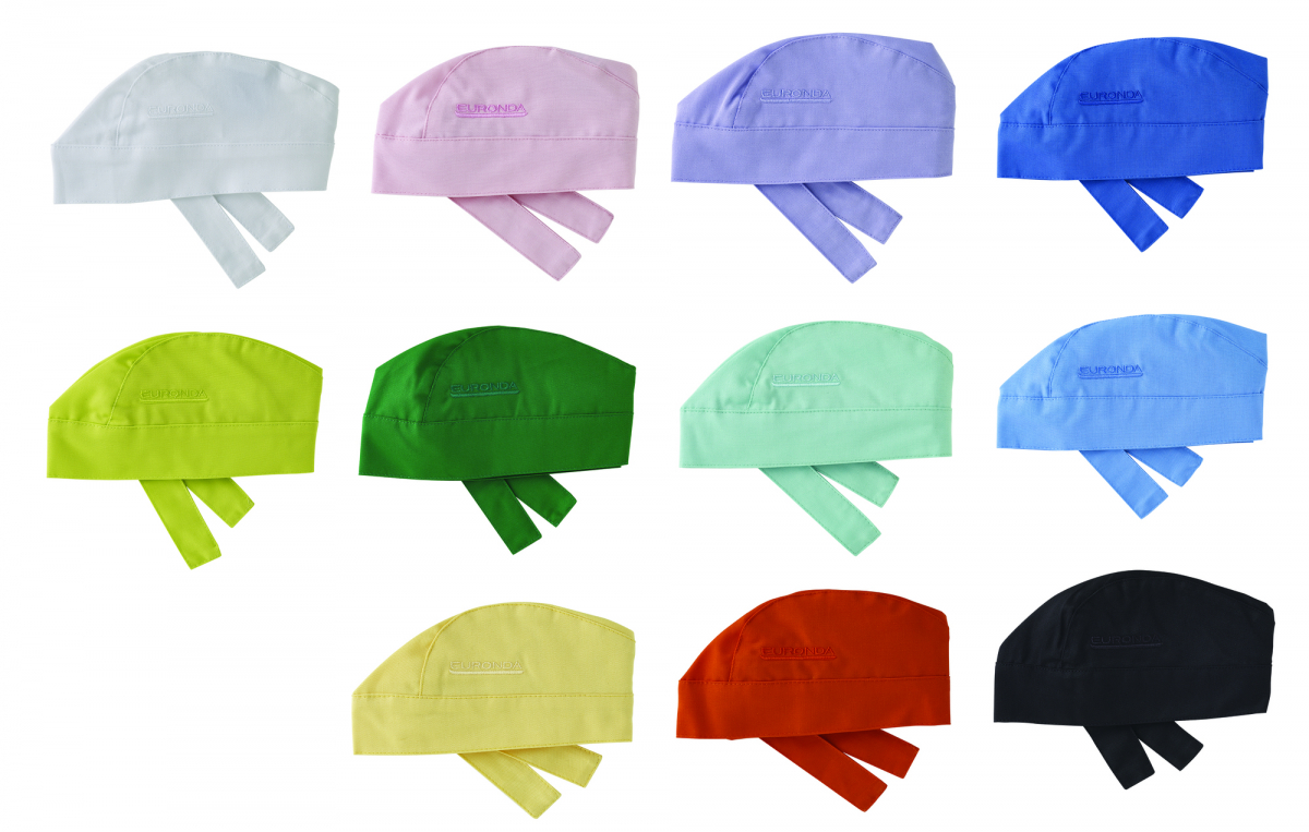 Comoda bandana in cotone, piacevole e confortevole da indossare, dotata di lacci, adattabile a tutte le misure, autoclavabile a 121°C.