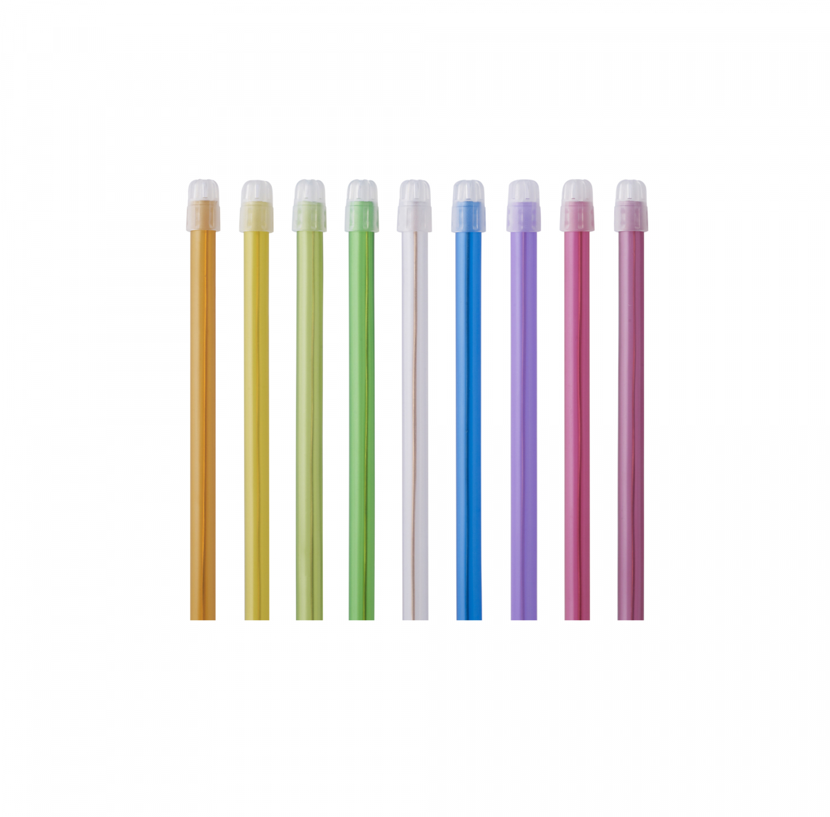 Aspirasaliva monouso flessibile in PVC trasparente atossico. Filo metallico incorporato per il perfetto mantenimento dell’angolo impostato, senza rischio di fuoriuscita in fase di piega. Cappuccio dalla forma arrotondata, fisso o removibile, ideale per interventi con mucose irritate.