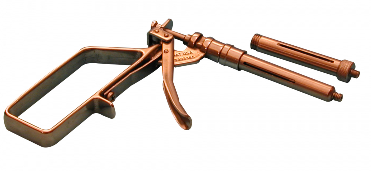 Siringa originale Peripress , per anestesia intraligamentare, in acciaio inox, con impugnatura anatomica e leva di dosaggio automatico dell'anestetico (0,20 ml). Può essere utilizzata con gli aghi attacco europeo o americano.