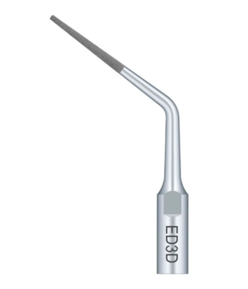 Inserto diamantato (≈ 40 µm) angolato 95°, con punta attiva da ~ 12 mm, ideale per rifiniture delle pareti canalari, rilocazione di imbocchi e rimozione di piccole calcificazioni. Compatibile con sistemi Satelec