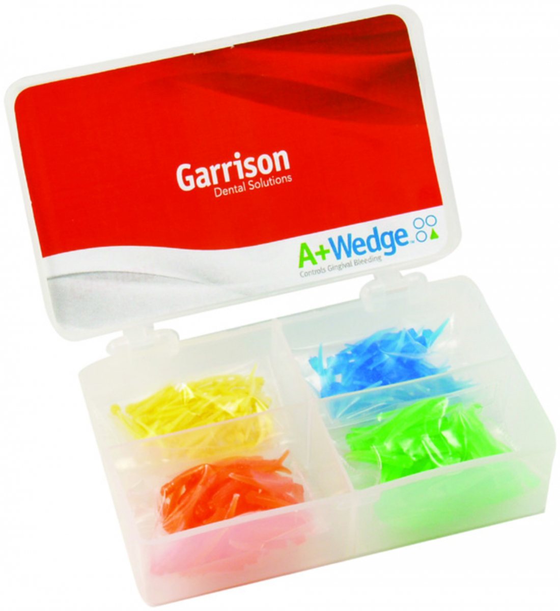 CUNEI INTERDENTALI ASTRINGENTI A+WEDGES Cunei interdentali astringenti, in plastica che garantiscono un controllo del sanguinamento gengivale e migliorano la visibilità della zona di lavoro del restauro. Caratteristiche: - non si sposta; la parte curva inferiore del cuneo impedisce lo spostamento - più lungo; il posizionamento dell„ anello è più facile, il cuneo non fuoriesce, e servono meno misure con i cunei A+Wedges che hanno una larghezza progressiva - mantiene asciutto; la copertura con astringente dei cunei A+Wedges evita il sanguinamento e la curvatura costante riduce i traumi - alloggiamento stretto e fisso; il cuneo si adatta, grazie al materiale plastico flessibile, all€anatomia naturale del dente - sigillatura affidabile; angoli e superfici sono leggermente curvi per riprodurre l€anatomia prossimale - inserimento delicato; la parte inferiore curva del cuneo lascia spazio alla papilla, favorendo una compressione da carico ridotta Disponibili in 4 misure differenti con identificazione tramite codice