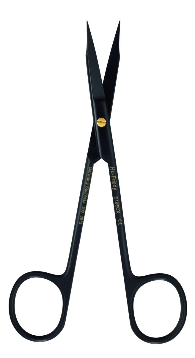 FORBICI GOLDMAN-FOX BLACK LINE Curva dentata - 12,5 cm. Black coating per una migliore qualità di taglio e maggiore durata. Affilatura SUPER CUT una lama affilata a rasoio per aumentare la capacità di taglio, l'altra dentellata evita lo scivolamento dei tessuti molli. Il contrasto cromatico tra il nero opaco dello strumento ed i colori delle strutture del cavo orale, rendono ottimale la visione del sito chirurgico: nessun effetto abbagliamento. Confezione: 1 pezzo