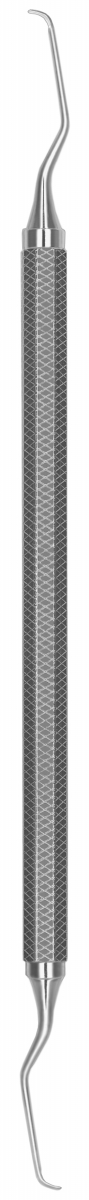 CURETTE GRACEY MINI-FIVE Facilita l'accesso a tasche gengivali profonde (più di 5 mm) grazie al gambo terminale allungato di 3 mm; anche l'accesso a ridotte superfici radicolari risulta facilitato grazie ad una punta più corta di quella della curette After-Five. L'effetto traumatico risulta ridotto, poichè la punta sottile permette di intervenire senza distendere il tessuto gengivale. Per anteriori. Manico nr.2, standard (Ø 6,5 mm).