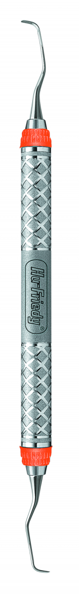 CURETTE GRACEY STANDARD Indicata sia per il deep scaling sia per la levigatura radicolare. Angolata, per le superfici mesiali in area molare e premolare. Manico nr.9, EverEdge Technology rotondo arancione, più grosso (Ø 9,5 mm).