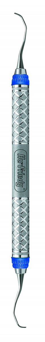 CURETTE GRACEY STANDARD Indicata sia per il deep scaling sia per la levigatura radicolare. Con pronunciata curvatura, per le superfici distali nei molari e nei premolari. Manico nr.9, EverEdge Technology rotondo blu, più grosso (Ø 9,5 mm).