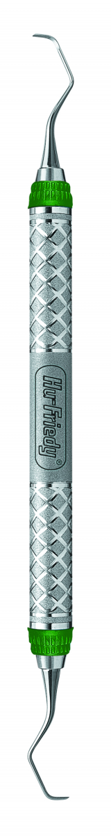 CURETTE GRACEY STANDARD Indicata sia per il deep scaling sia per la levigatura radicolare. Maggiormente angolata, per molari, per premolari, per superfici facciali ed orali. Manico nr.9, EverEdge Technology rotondo verde, più grosso, (Ø 9,5 mm).