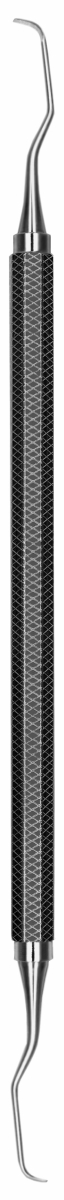 CURETTE GRACEY AFTER-FIVE Gambo terminale 3 mm più lungo per tasche gengivali profonde (almeno 5 mm). La sottile punta facilita l'accesso alle tasche preservando da un'eccessiva distensione del tessuto. Indicata sia per il deep scaling sia per la levigatura radicolare. Per anteriori. Manico nr.2, standard (Ø 6,5 mm).