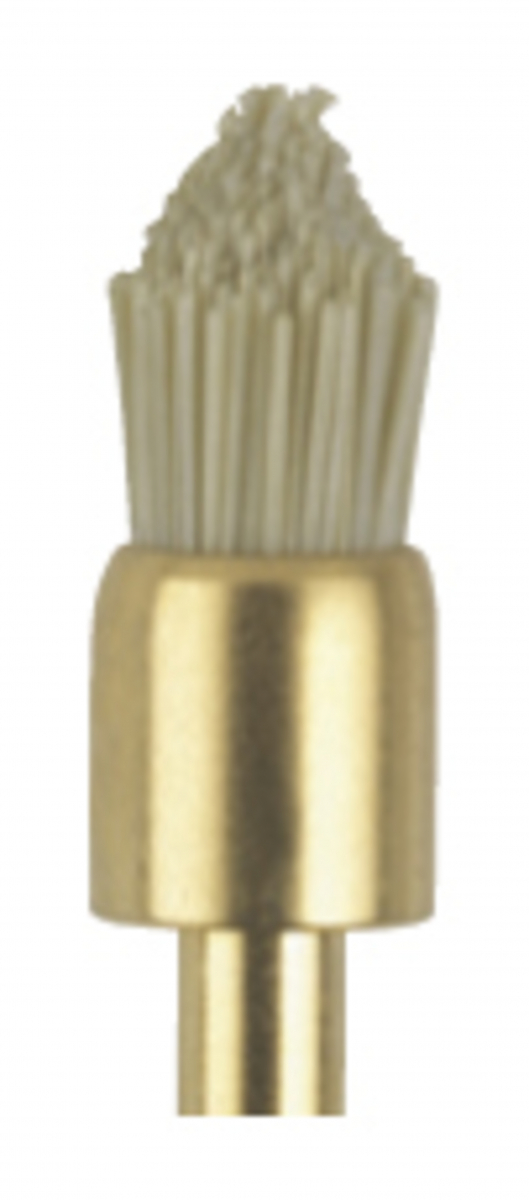 OCCLUBRUSH Coppette in setola, per la rifinitura e la lucidatura rapida. In fibra speciale, con agenti di brillantatura a base di carburo di silicio incorporati, questi spazzolini sono particolarmente indicati in presenza di restauri di superfici occlusali e concave in compomero, composito e cemento a base di fibra di vetro ceramica e resina. Si utilizzano senza l'impiego di paste e sono sterilizzabili fino a 140° C. Confezione da 3 pezzi - coppette a punta