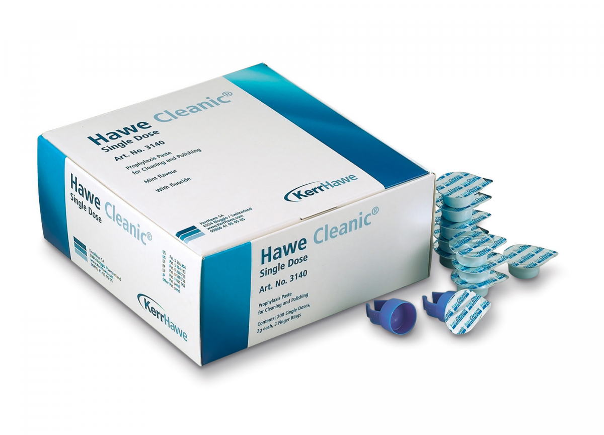 CLEANIC Pasta per profilassi universale, a base di Perlite. La peculiarità di questa pasta abrasiva consiste nella sua possibilità di variare granulometria (da grossa a fine) semplicemente se sottoposta a pressione, caratteristica che garantisce una lucidatura eccellente. Non contiene glutine. VERSIONE CON FLUORURO DI SODIO 0,10% Confezione: 200 coppette monodose da 2 gr cad. + 3 anelli porta pasta