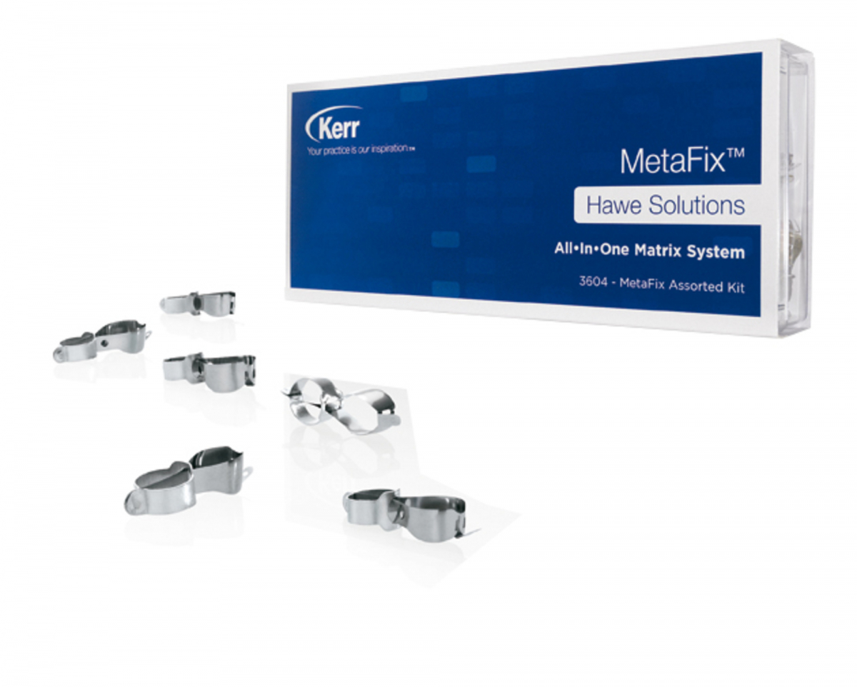 METAFIX Nuova matrice All-in-One dotata di innovativi sistemi di tensionamento e apertura integrati: rappresenta la soluzione ideale per i restauri in composito dei settori posteriori di cavità di II classe MO/MD/MOD. Il sistema di tensionamento integrato permette un semplice posizionamento della matrice anatomica e, allo stesso tempo, l'innovativo sistema di apertura assicura una rimozione estremamente semplice della matrice, senza danneggiare il restauro. Non occorre nessun strumento addizionale nè da pulire e nè da disinfettare: Metafix è realizzata in acciaio rigido di classe medicale con spessore di 0,038 mm che ne assicura un'eccezionale stabilità, ed è disponibile in tre misure (Large, Medium, Small con un diametro compreso tra 20 mm e 42 mm) che consentono di posizionarle sui premolari e sui molari con un ottimo adattamento perimetrale al dente. Di forma bombata, per un perfetto controllo del punto di contatto, Metafix ha un design anatomico progettato per un migliore adattamento cervicale, è leggera