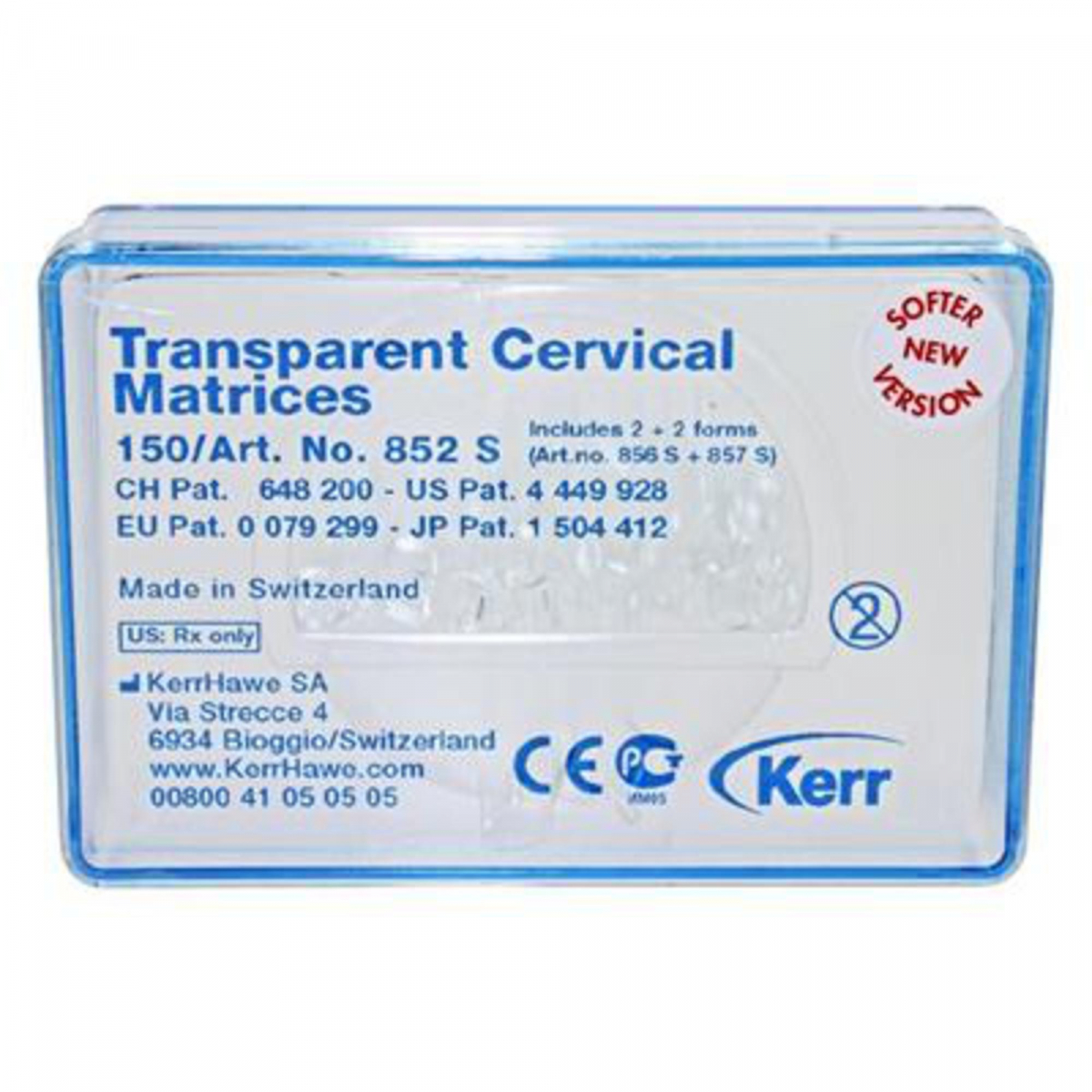 per un adattamento ottimale all'anatomia del dente. Confezione Ricambio: 150 pezziMatrici cervicali trasparenti, sagomate anatomicamente,