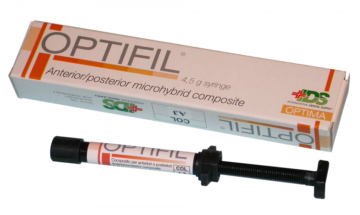 OPTIFIL - Ids Composito microibrido fotopolimerizzabile, altamente riempito, per ricostruzioni nei settori anteriori e posteriori. Altamente estetico, radiopaco, a rilasci o di fluoro, estremamente resistente all 'elevata compressione e all'abrasione. Lucidabilità ad elevata brillantezza. Confezione da 1 siringa da 4,5 gr